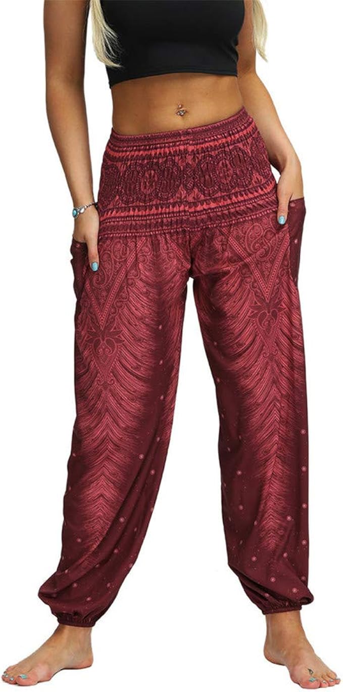Haremshose Damen, Weiche Baumwollmischung Weite Beine Elastischer Kordelzug Haremshose Mit Taschen, Yoga Strandhose Für Damen (Mehrere Farben Und Größen) :
